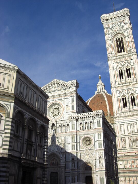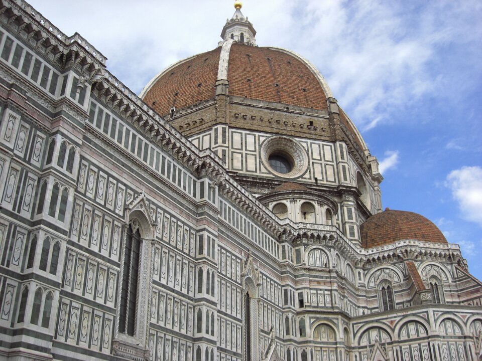 Florence, capital of Italy's Tuscany region, is home to many masterpieces of Renaissanceart and architecture. One of its most iconicsights is the Duomo, a cathedral with aterracotta-tiled dome engineered by Brunelleschi and a bell tower by Giotto. The Galleria dell'Accademia displays Michelangelo's "David" sculpture. The Uffizi Gallery exhibits Botticelli's "The Birth of Venus" and da Vinci's "Annunciation."